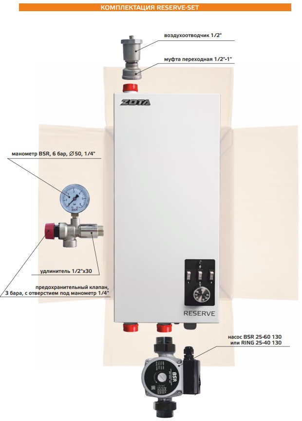 Два патрубка подачи, позволяющие врезку котла в систему отопления с использованием различных гидравлических схем, в том числе использование котла в качестве гидроразделителя